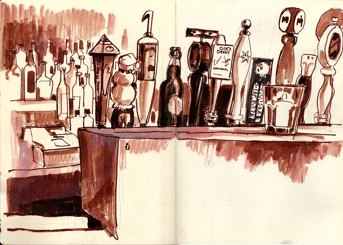 I've been doing these bar sketches for years now and You run into the same people from time to time. These are two sketches I did of the chap from yesterdays post, they were done in a bar called JD's which no longer exists. I did a great many sketches of the regulars in JD's and they all and to find another watering hole when it closed. For this guy it was P.J Clarke's which is only two blocks from where JD's once stood.