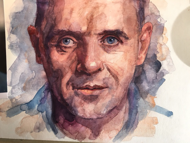 This one went smooth and by the numbers, a compelling photo to work from certainly helped. A value study first and foremost, color in a second consideration, I started with a palette of blues and oranges and built up a thin washes until finishing with opaque paint, trying to keep the lightest touch.